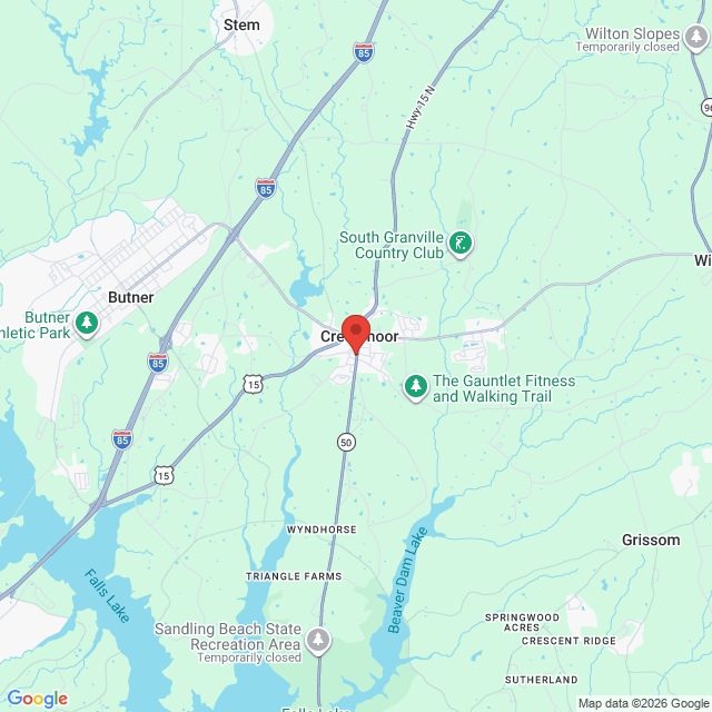 We are located in the parking lot on the south side of Creedmoor Drug 108 North Main Street. Creedmoor NC 27522